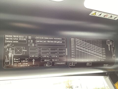 Bauart: Frontstapler / Elektro 4 Rad-Stapler, Tragkraft: 4000kg, Hubhöhe: 4225mm, Bauhöhe: 2220mm, Freihub: 1350mm, Gabellänge: 1500mm, Batterie: CEIL Battery Systems 80V 840Ah , Bereifung vorne: Vollgummi Einfach 80 - 100% , Bereifung hinten: Vollgummi Einfach 80 - 100% , Anbaugeräte: Seitenschieber, Sonderausstattung: 3. Ventil, Lastschutzgitter, Vollfreihub, Safety Light, Sonderausstattungbeschreibung: Container Version Zusatzhydraulik 3 Ventile Beschreibung: Container Version