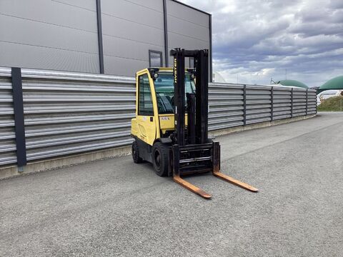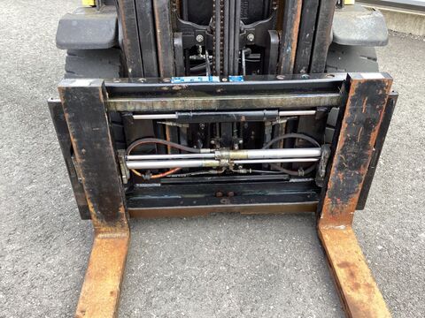 Bauart: Frontstapler / Dieselstapler, Tragkraft: 3500kg, Hubhöhe: 5215mm, Bauhöhe: 2415mm, Freihub: 1550mm, Gabellänge: 1200mm, Batterie: 12V , Bereifung vorne: Vollgummi Einfach 60 - 80% , Bereifung hinten: Vollgummi Einfach 80 - 100% , Anbaugeräte: Seitenschieber, Zinkenverstellgerät, Sonderausstattung: 4. Ventil, Arbeitsscheinwerfer hinten, Arbeitsscheinwerfer vorn, Heizung, Vollkabine, Vollfreihub, Edelstahl,