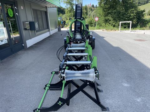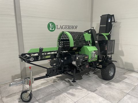 TECHNISCHE DATEN & AUSSTATTUNG - Spaltkraft: 20 t - Zykluszeit: 6–12 Sekunden - Abförderband (LxBxH): 320 x 25 x 220 cm - Zuführförderband: 84 cm Arbeitshöhe / 20 cm Arbeitsbreite - Eigengewicht: 786 kg - Loncin Benzinmotor mit 25 PS und Elektrostart - Vollhydraulische Bedienung - Sägegeschwindigkeit einstellbar - PKW-Fahrgestell | Anhängerkupplung - Verarbeitung von Stammhölzern von 10–50 cm durch Sägen und Spalten in einem Durchgang - 20” Kettensäge mit OREGON-Sägekette und automatischer Kettenschmierung - Verarbeitung von 4–6 m³ Holz/Stunde - Automatischer Abtransport des Materials mittels Gurtförderer - 4-fach und 6-fach Spaltkreuz - 2 m langes Zuführband an Doppelkette - Separator bei Abförderband - Mechanisch verstellbares Förderband - Ölkühler - Sicherheitsklappe, um das Fallen von Holzscheiten zu verhindern PREIS inkl. MwSt.: 9.970 EUR OPTIONALES Zubehör (gg. Aufpreis): - Hydraulischer Hebetisch: 2.102 EUR - Zuführtisch: 2.285 EUR Nach Absprache organisieren wir gerne den Transport zu Ihnen nach Hause. Die Transportkosten richten sich nach Entfernung, Gewicht und Abmessungen der Ware. Für weitere Informationen oder zur Verfügbarkeitsprüfung einzelner Landmaschinen stehen wir Ihnen – oder unsere regionalen Vertriebspartner – gerne telefonisch oder per E-Mail zur Verfügung. Öffnungszeiten: Montag–Freitag 08:00–16:00 Uhr, Samstag 08:00–12:00 Uhr Der Hauptsitz von LAGERHOF befindet sich in Podplat (PLZ 3241), Slowenien – ca. 1 Stunde Fahrt von Graz entfernt.Kontaktdaten: