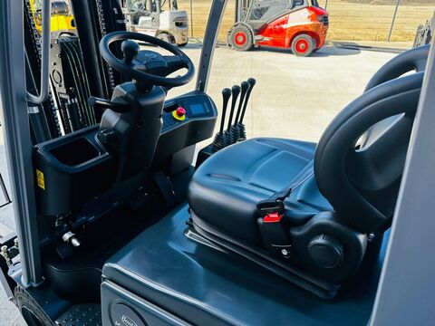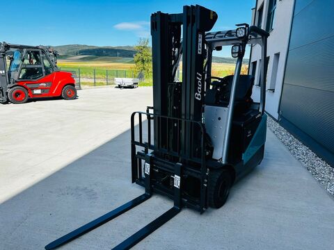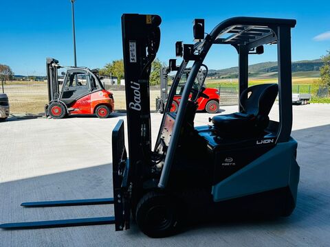 Bauart: Frontstapler / Elektro 3 Rad-Stapler, Tragkraft: 1500kg, Hubhöhe: 4700mm, Bauhöhe: 2150mm, Gabellänge: 1200mm, Batterie: Bj. 2024 80V 228Ah , Bereifung vorne: Superelastik , Bereifung hinten: Superelastik , Anbaugeräte: Seitenschieber, Sonderausstattung: 3. Ventil, 4. Ventil, Arbeitsscheinwerfer hinten, Arbeitsscheinwerfer vorn, Lastschutzgitter, Vollfreihub, Sonderausstattungbeschreibung: Aufstiegsgriff vorne links, Haltegriff hinten rechts, Panoramaspiegel Warnleuchte gelbes Blitzlicht, vorne: 2 geschützte LED-Scheinwerfer mit Fahrtrichtungsanzeiger, hinten: LED-Schluss- und Bremsleuchten, Fahrtrichtungsanzeiger, Warnblinkanlage, Signalton bei RückwärtsfahrtKontaktdaten: