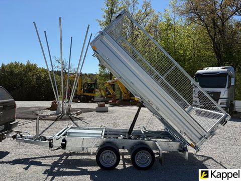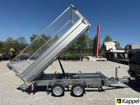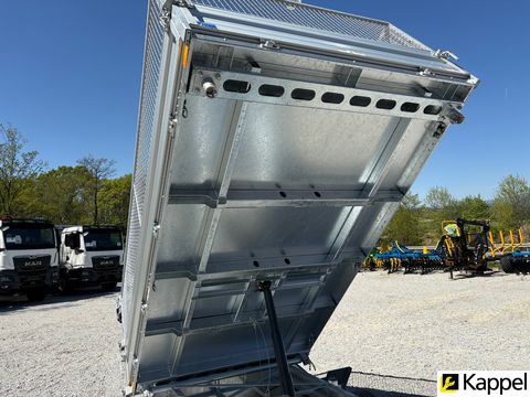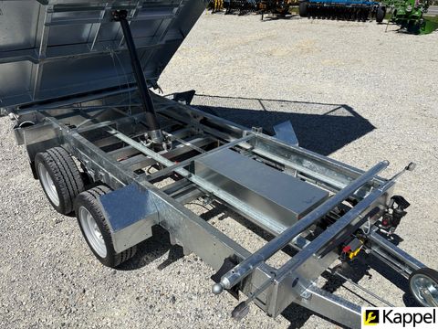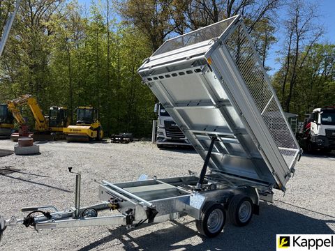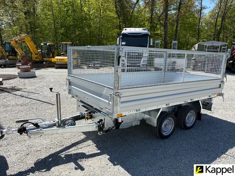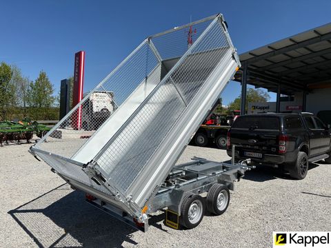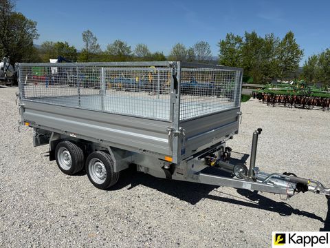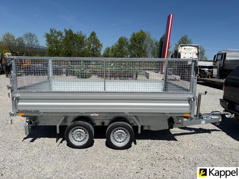HUMBAUR HTK 3000.31 - Dreiseitenkipper mit E-Pumpe • Neugerät • Dreiseitenkipper - Kippwinkel: 45° • zulässiges Gesamtgewicht: 3.000 kg • Nutzlast: 2.130 kg • Innenmaße: 3.140 x 1.750 x 350 mm • Gesamtmaße: 4.500 x 1.930 x 1.260 mm • Elektropumpe kombiniert mit Handpumpe • Bereifung: 13 Zoll • Ladehöhe: 745 mm • Zugdeichsellänge: 1.280 mm • Kupplungshöhe: 430 mm • Fahrgestell und Kippbrücke tauchbad feuerverzinkt • V-Zugdeichsel tauchbad feuerverzinkt • Kippbrücke aus Stahl, aus einem Stück gefertigt • Bordwände aus eloxiertem Aluminium, kpl. abnehmbar • hintere Klappe pendelbar • Anbinderinge im Brückenboden montiert, Zugkraft 800 kg pro Anbindering • Stützrad automatisch • Rampenschacht unter der Ladefläche Optional erhältlich: • 600 mm Gitteraufsatzwände • Kurbelstützen • Alu-AuffahrrampenZul. Gesamtgewicht (t): 3