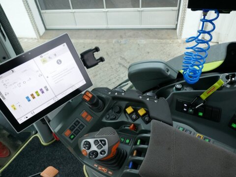 - 6-Zylinder FPT Motor mit 295 PS - Fahrerpaket Premium - LED Paket Premium - Digitalpaket III mit RTK Lenksystem CEMIS 1200 mit TC GEO mit TC Section Control mit Freischaltung variable Ausbringung - stufenloses CMATIC-Getriebe - REVERSHIFT-Wendeschaltung - Hydrauliksystem Load-Sensing (205 l/min) - CEBIS Bedienterminal mit Touch - Funktion - ELECTROPILOT mit Reversierfunktion - dynamische Lenkung (GPS Ready) - 7x doppelwirkende Steuergeräte (elektrohydraulisch proportional) - Frontkraftheber mit EHR - Frontzapfwelle - PowerBeyond - ISOBUS - EHR - Zugmaul - K80 mit K50-Zwangslenkundskugel - CEMOS Ausstattungspaket inkl. Ablagepaket inkl. CLAAS Soundsystem inkl. Lenksystem CLAAS CEMIS 1200 (mit Freischaltungen) Der Schlepper befindet sich in einem sehr gutem und gepflegten Zustand. Sofort Verfügbar! Irrtümer, Druckfehler und Preisänderungen vorbehalten.Bereifung vorne: 600/70R30