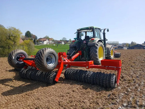 Krukowiak Prismawalze OMEGA PLUS 6.2 HArbeitsbreite 6.2 m, die seitlichen Walzen sind mittig pendelnd aufgehängtKlappung durch zwei Zylinder, so funktioniert das klappen auch problemlos am Hang2 DW Ventile erforderlichBereifung 400/60-15.5Obenanhängung mit 40 mm FlanschzugöseHydraulischer StützfussSteinsammelboxWarntafeln und LED BeleuchtungsanlageFür Auskünfte stehe ich dir gerne zur Verfügung.Markus Beyeler 031 333 30 36 // 077 413 70 78www.LandmaschinenAG.ch