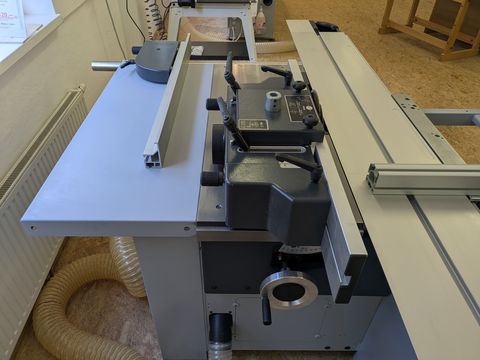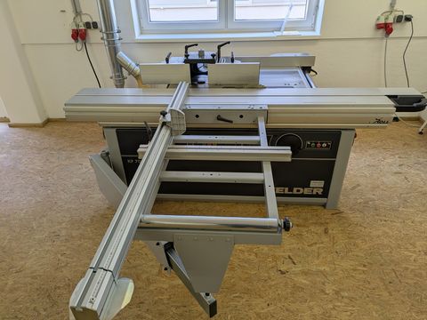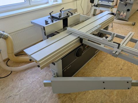 VORFÜHRMASCHINE! Zum Verkauf steht eine gebrauchte Felder KF 700 SP Kreissäge Fräse mit einer Schnittbreite von 800 mm. Die Maschine ist in einem sehr guten Zustand und wurde von unserem Fachpersonal aufbereitet und überprüft. (Voll funktionsfähig) Technische Daten: - Kreissäge u. Fräse schwenkbar 90-45° - Formatschiebetisch 2500 mm - Auslegertisch mit Gehrungslineal 2600 mm - Kreissägeanschlag mit Feineinstellung - Schnittbreite 800 mm - Fräsanschlag mit Multi-Einstell-System - 4 Fräsgeschwindigkeiten - 3 motorig á 7,5 PS (5,5 kW) - Automatischer Stern-Dreieck-Start Die Maschine steht in A-8561 Söding und kann während unserer Öffnungszeiten jederzeit begutachtet werden. Zwischenverkauf vorbehalten! Verwandte Begriffe: Säge, Kreissäge, Fräse, kombinierte Maschine, Kombimaschine, Fräsmaschine Referenz: R-D1618Kontaktdaten: