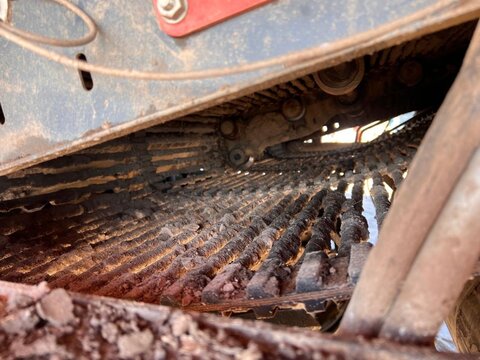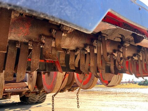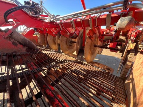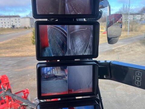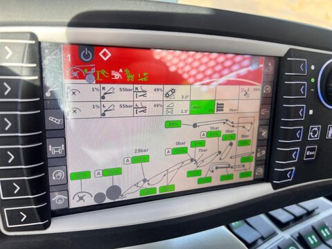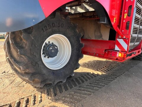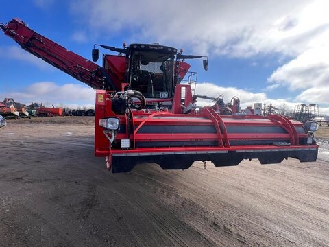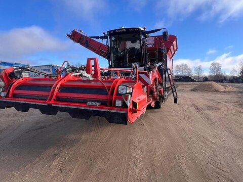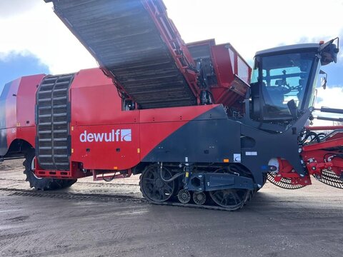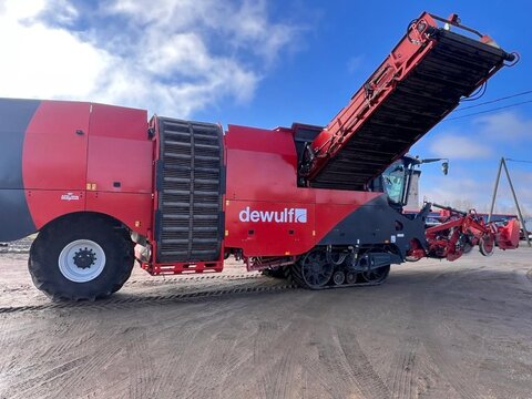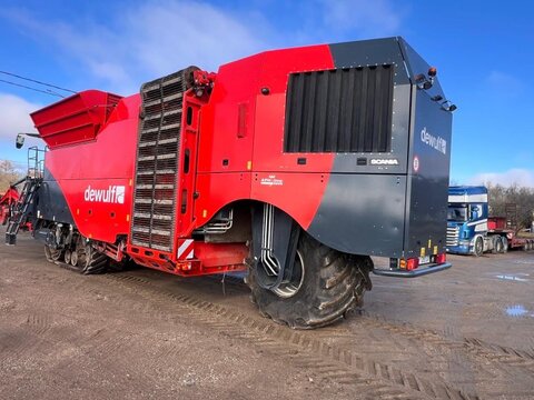 DeWulf Kwatro Harvester – Technical Specification General Features • Type: Self-propelled 4-row potato harvester • Automatic levelling with manual operation via control pedals • Machine Load Monitoring: Pressure sensors on sieving conveyors and hedgehog unit, displayed in the control unit Engine & Drive • Engine: Scania DC13, 368 kW (500 hp), Stage V compliant • EcoDrive: Automatic rpm adjustment for efficient harvesting • Hydrostatic drive: 0–25 km/h • Road rpm: 1600; Field max rpm: 1900 • Exhaust: Venturi system Rear Axle • Steerable central rear wheel: 64° left, 56° right, position indication and automatic neutral • Traction: Adjustable per wheel, automatic gear option • Tyres: Mitas 1250/50 R32, max 1.4 kg/cm² Haulm Chopper • Type: 4-row haulm topper, pulverizes haulm and deposits between ridges • Material: Durable hood • Rotor: For 750 mm row distance • Automatic Depth Control (ADC): With skid plate Harvesting Unit • Frontal harvesting unit: Support rollers, single harvesting shares (adjustable inclination), haulm intake rollers • APC: Automatic pressure control, adjustable weight relief per 1 bar • Spray Track Detection: Maintains fixed position during rapid skid movement • Shares: 475 mm wide, break bolt system • Support wheels: 5 steel wheels, 100 mm wide middle support wheel • Automatic Steering (DAS): Monitors ridge, steers back wheel Sieving Conveyors • Conveyor 1: 2 webs, 1460 mm wide, pitch 50, hydraulically driven, speed/turning adjustable, Syncro Flow • Conveyor 2: 2 webs, 1460 mm wide, pitch 40, hydraulically driven, Syncro Flow • Conveyor 3: 2 webs, 1460 mm wide, pitch 40, star PVC, overlap, Syncro Flow Agitators & Haulm Rollers • Star agitators: On/off, speed adjustable from cabin • Haulm roller unit: Spiral roller, cleaning roller, speed/position adjustable from cabin, anti-blocking system Hedgehog Unit • Width: 2700 mm (2 x 1350 mm) • Drive: Hydraulic, divisible universal drive sprockets (ø 180 mm) • Inclination, speed, turning: Adjustable from cabin • Waste evacuation: PVC waste conveyor • Automatic inclination control Cleaning Unit • Flexyclean®: Fully closed bar web, stepless movement (0–100%) over 30 axial rollers (5° fixed inclination), speed adjustable, anti-blocking system • Position control: Visualization and presets in control unit Distributor & Ring Elevator • Distributor: 3 webs, pitch 32, full width elevator filling • Ring elevator: 1200 mm wide, hydraulic drive, active side plates, boost function, fully closed bar web Discharge Conveyor • Width: 1250 mm, hydraulically driven, fixed on chassis, automatic drop height (min 150 mm), speed adjustable Bunker • Type: 1-part bunker • Capacity: 17.5 m³ • Discharge width: 1560 mm • Chain: Robust, shielded, large rollers, automatic hydraulic tensioners • Discharge height: Max 4200 mm, min 1800 mm • Automatic oil system for bunker chain Cabin • Type: Claas cabin • Features: Windscreen wiper, sunshades, Grammer pneumatic seat, adjustable steering wheel, heated wing mirrors, extra frame for equipment, Bluetooth radio, air conditioning Control Unit • DCU & HCU: Drive and harvesting control units, user-friendly joystick, 20 quick access buttons, 5 adjustable presets Cameras & Lighting • Super Vision: 14 cameras, 4x 10" screens, automatic trigger system • Work lights: LED flood lights, 8 LED work lights Miscellaneous • Automatic greasing system • Standard hydraulic oil • English manual • Road regulation package: Road lights, striped plates Dimensions & Capacities • Row distance: 750 mm • Share width: 475 mm • Bunker capacity: 17.5 m³ • Discharge height: 1800–4200 mm Sprechen Sie uns für weitere Informationen oder einen Besichtigungstermin gerne an! Wir sprechen Deutsch! We speak English! Мы говорим по-русски! Der Preis ist für den dargestellten Zustand gültig. Die Angaben in der Beschreibung und die Bilder sind ohne Gewähr. Es wird keine Haftung für Schreib- und Übermittlungsfehler übernommen. Unverbindliches Angebot. Irrtümer, Zwischenverkauf und Änderungen vorbehalten.Kontaktdaten: